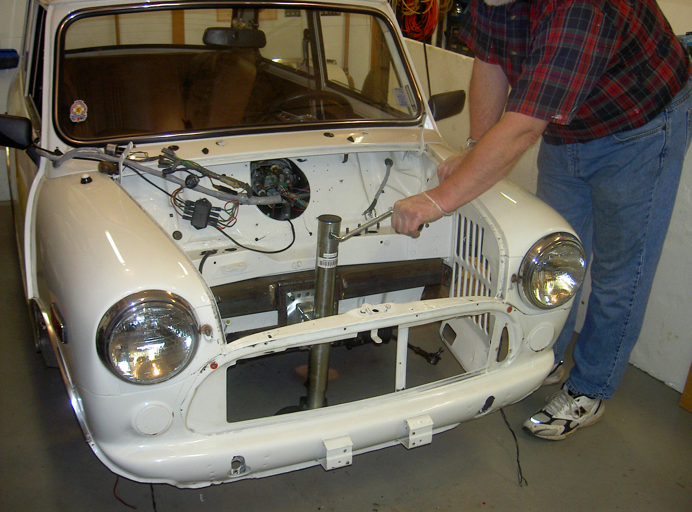 two points on a Mini body where the front sub-frame towers normally